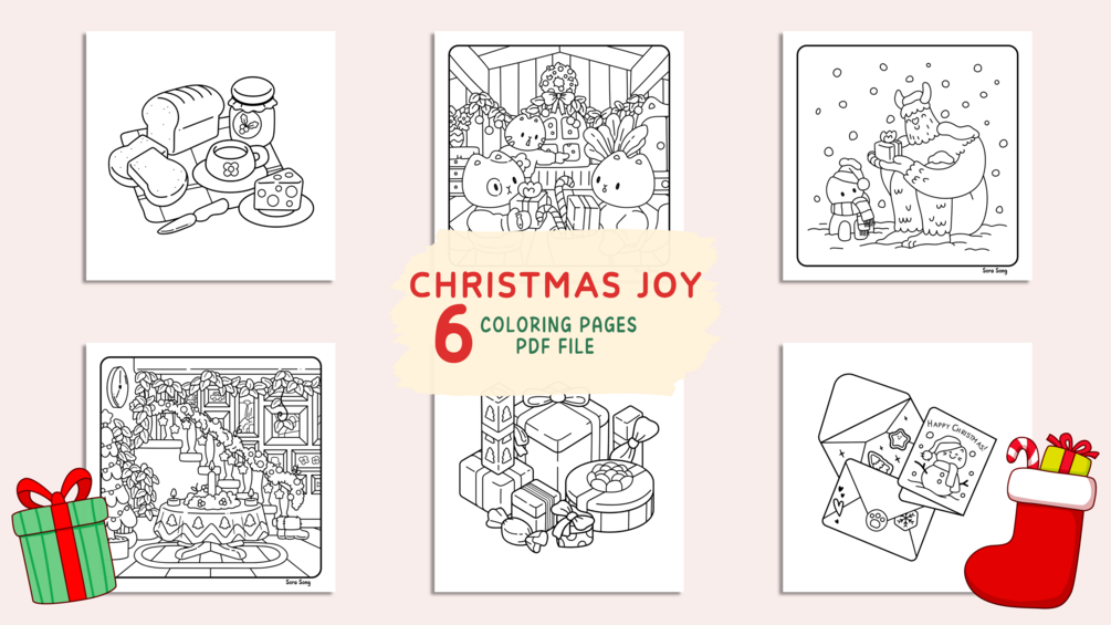 Christmas Joy Coloring Pages: Set 4 (6 Pages)