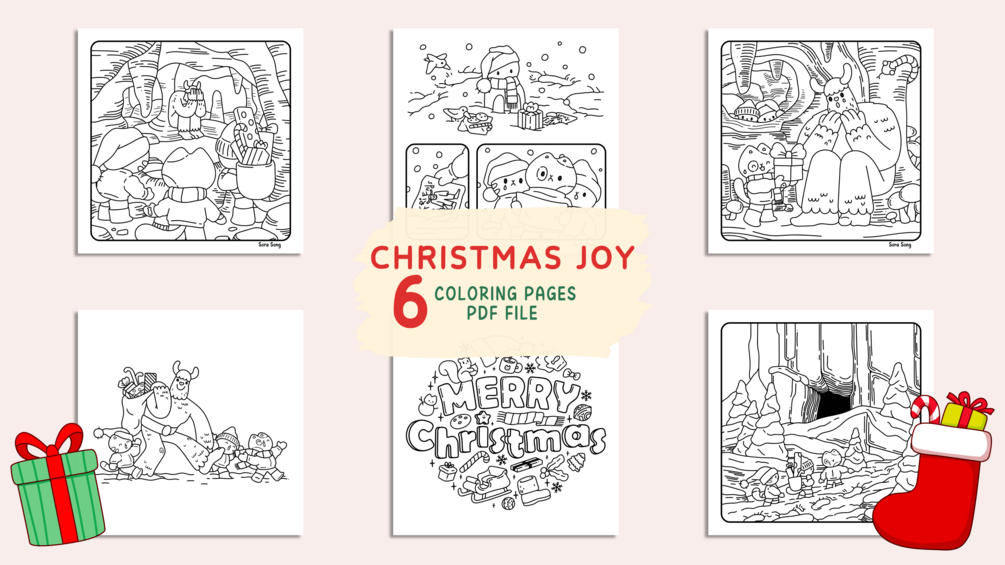 Christmas Joy Coloring Pages: Set 5 (6 Pages)